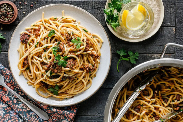 Спагетти с грибами «Дивное лукошко»